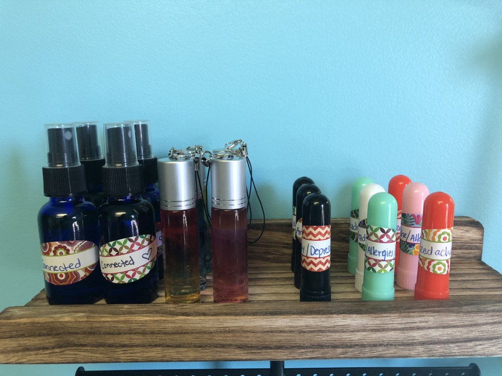 I do a lot of custom oil work- room spray, body sprays, spider away spray, oils to help heal & repair skin burns, belly button oil treatments and more.