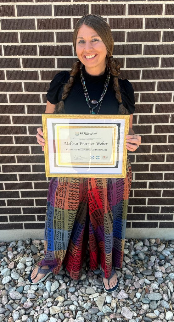 In 2025 Melissa attended an in person intensive Certified Master Sound Healer Course in Colorado Springs to fully embrace the unique status of Certified Master Sound Healer.
