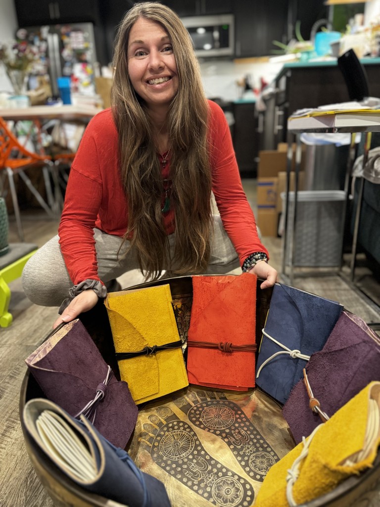 I handcraft journals from leather and vegan leather while infusing them with divine intentions for your highest and best good. I bless each one and infuse them with reiki healing energies. I infuse the intentions that each journal shall help guide the owners through life for their highest and best good and that they support them as they journal. Journaling especially in cursive creates beautiful neural connections between the hand and the mind and as you pour your heart and soul on the pages the divine helps you process and grow from your experiences. I use the leather string to tie around the journals because tying knots with the hands also create brain enhancing neural connections.