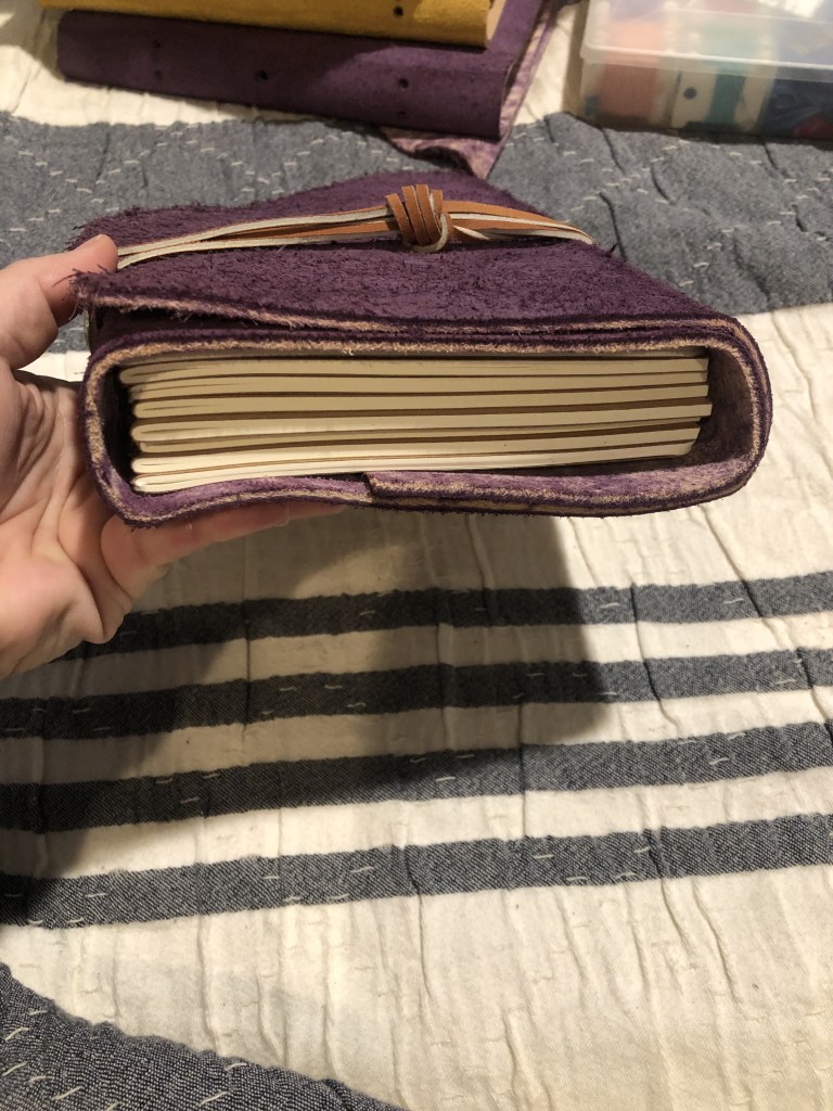 The larger the journal the more leather, work and time it takes. Each journal is a one of a kind unique creation. When your journal is filled you may clip the spine remove your writings and return it and I will sew in new pages at an agreed upon price. I recently made my first 12 book XL journal when someone challenged me to create a journal that would last for a year… So for 2025 I will be testing out a full year journal personally.