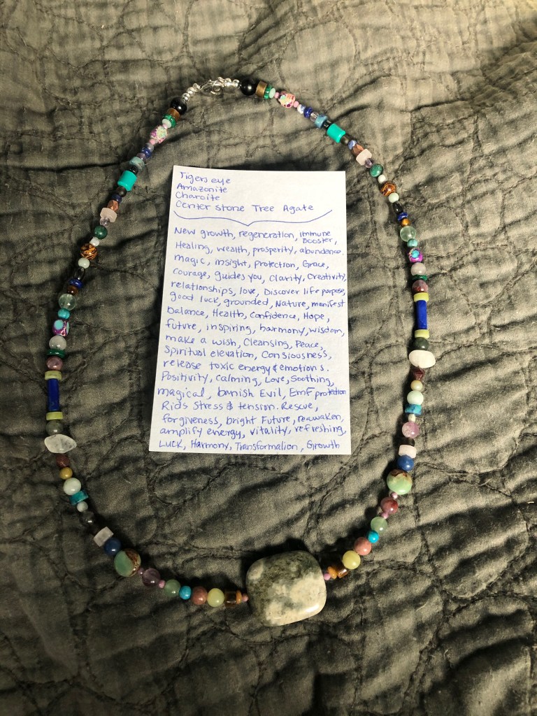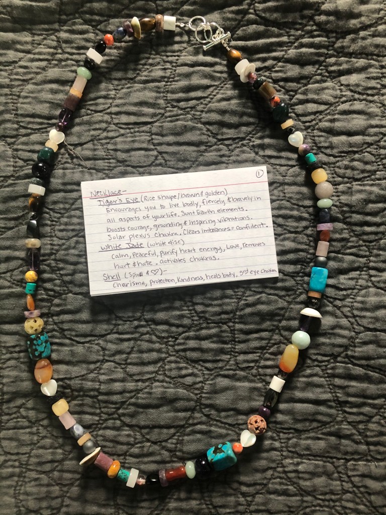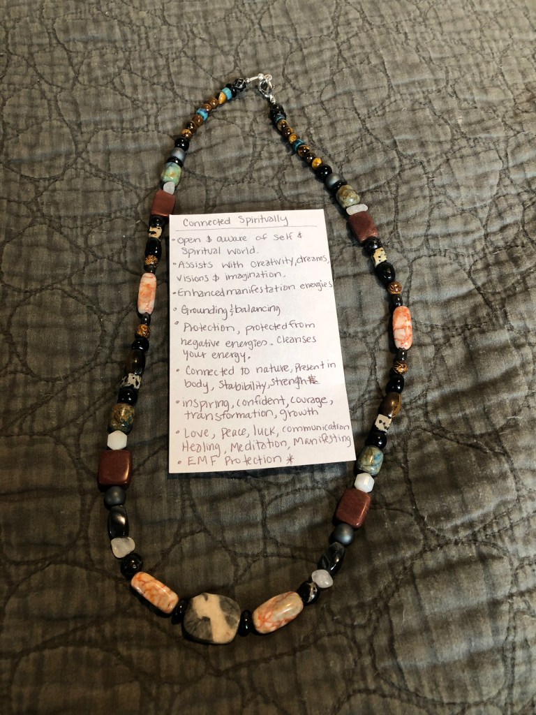 I make spirit channeled jewelry and infuse it with intentions, reiki, blessings and protection. Depending on what someone needs I develop a “recipe” that will support and guide them along their journey and then I lean in and God does the rest.