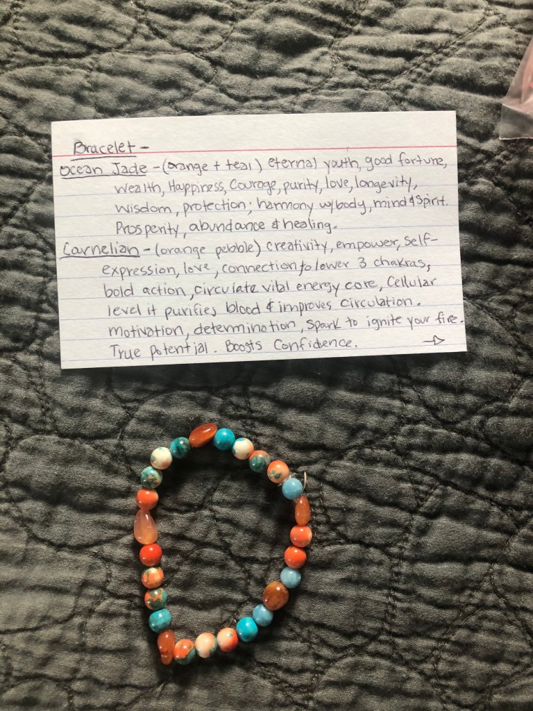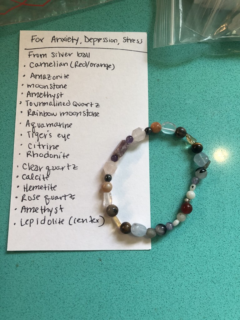 Grab & Go………………………………………..I do make Sacred intention jewelry to have on hand for quick help such as bracelets with intentions of: Protection, Anxiety & Stress, Grief & Sadness, Depression & Vertigo for grab and go. The bracelets are $20 or 2 for $30.